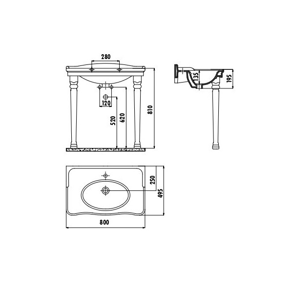 Раковина керамическая CREAVIT Antik 800х495х195 мм возможна установка с ножками AN080-00CB00E-0000