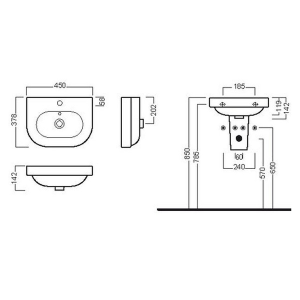 Раковина керамическая HATRIA Daytime 45 450х378х142 мм YXBM01: