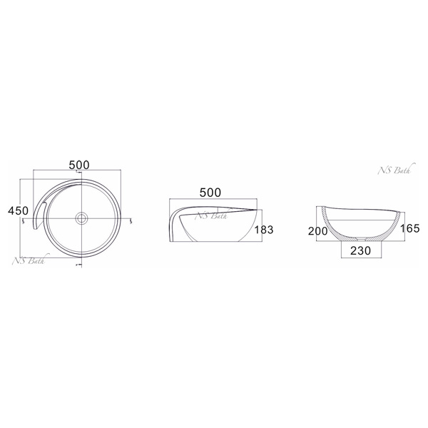 Раковина на столешницу NS BATH 500x450x200 мм из композитного материала Polystone белый NST-5045G