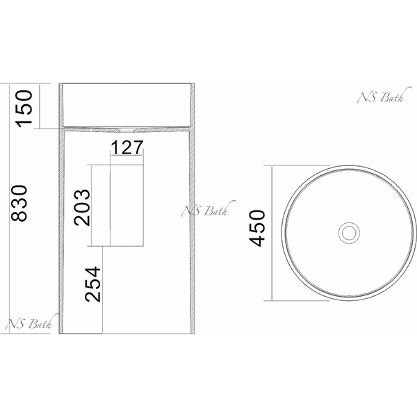 Раковина напольная из искусственного камня пристенная NS BATH 450x450x830 мм NSF-4586