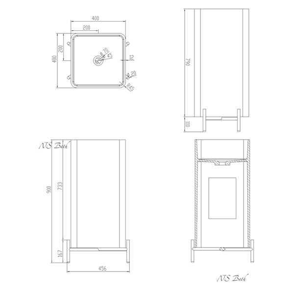 Раковина напольная пристенная на ножках NS BATH 456x400x900 мм из композитного материала Polystone NSF-40456