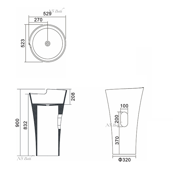 Раковина из искусственного камня напольная NS BATH 529x523x900 мм NSF-5290
