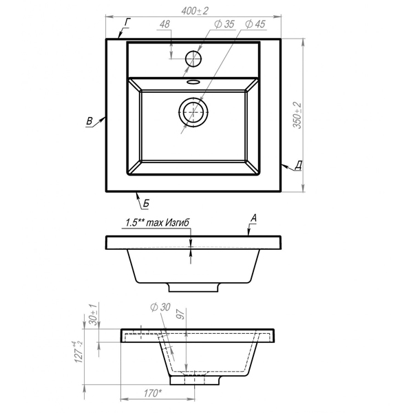 Раковина из искусственного мрамора ART and MAX Family 400х350х127 мм AM-LAV-400-MR-A: