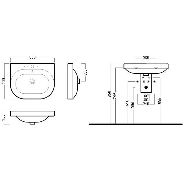 Раковина керамическая HATRIA Daytime 62 620х500х185 мм Y0YT01: