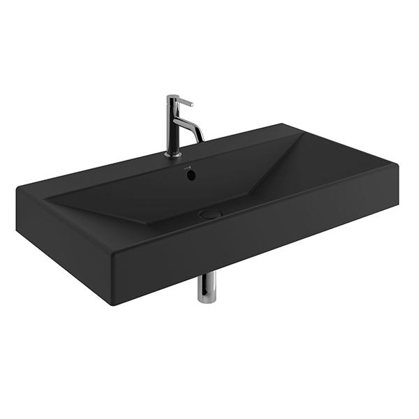 Раковина подвесная керамическая KLUDI Resa прямоугольная 1010x500 мм с отверстием для смесителя черный матовый 59WW10139