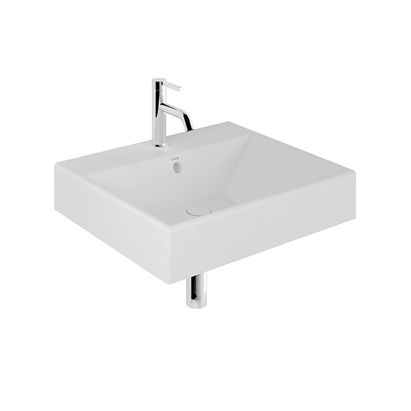 Раковина подвесная керамическая KLUDI Resa прямоугольная 610x500 мм с отверстием для смесителя белый матовый 59WW6153