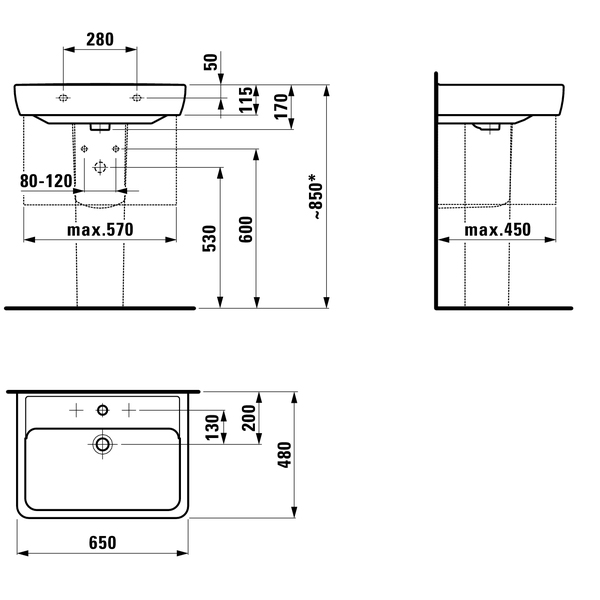 Раковина LAUFEN Pro 650х480х115 мм с 1 отверстием для смесителя 8.1895.3.000.104.1