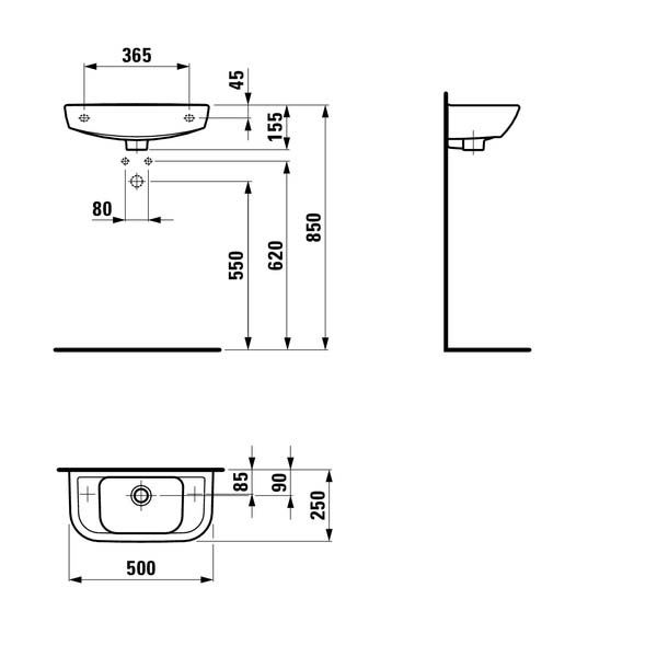 Раковина LAUFEN Pro L 500x250x155 мм с 1 отверстием для смесителя слева 8.1695.7.000.105.1