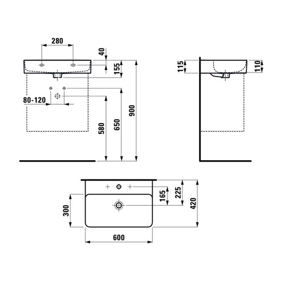 Раковина LAUFEN Val 600x420х115 мм, с отверстием для смесителя 8.1028.3.000.104.1