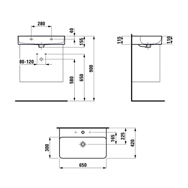 Раковина LAUFEN Val 650x420х115 мм с отверстием для смесителя 8.1028.4.000.104.1