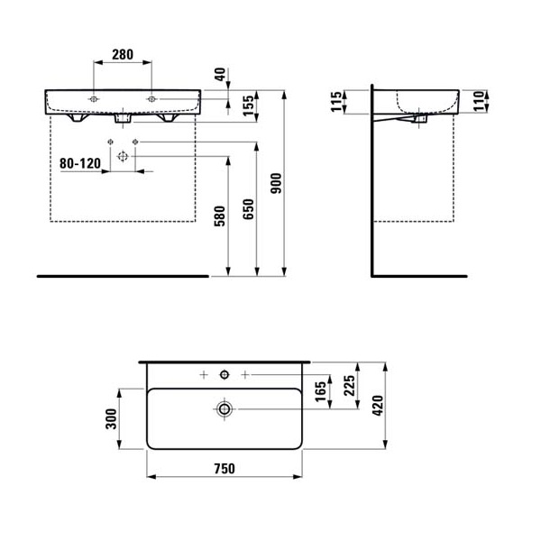 Раковина LAUFEN Val 750х420х115 мм с отверстием для смесителя 8.1028.5.000.104.1