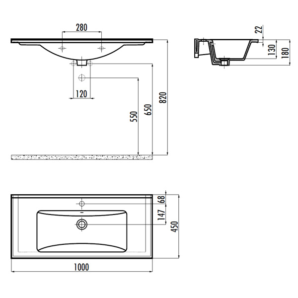 Раковина мебельная CREAVIT Su 1000х450х130 мм капучино SU100-00CM00E-0000
