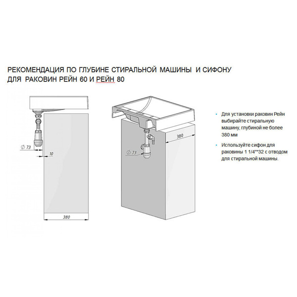 Раковина на стиральную машину AQUATON Рейн 80 см 1A72113KRW010: