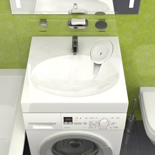 За счёт особого устройства слива раковину можно монтировать непосредственно над стиральной машиной.