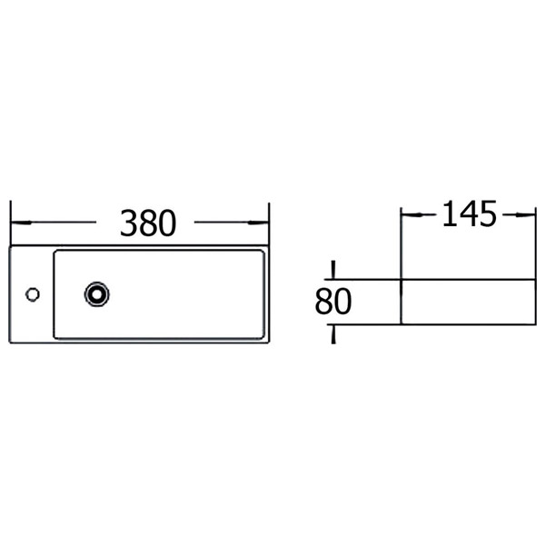 Раковина на столешницу CERAMALUX 380x148x80 мм отверстие для смесителя слева 9048FR