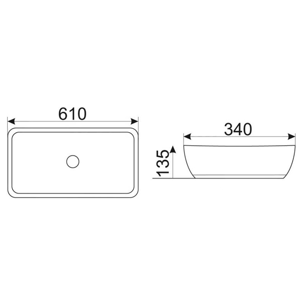 Раковина на столешницу CERAMALUX 610x340x135 мм 9217