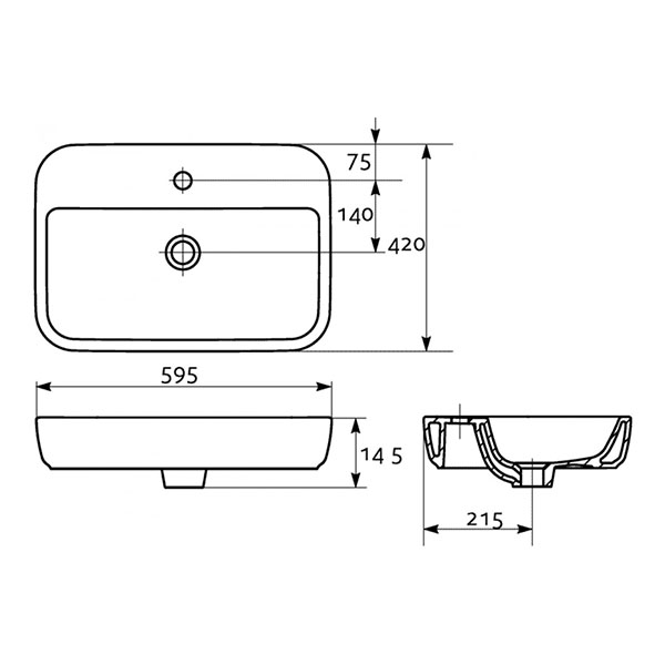 Раковина на столешницу CERSANIT Caspia Square 595x420x145 мм UM-CAS60/1-S: