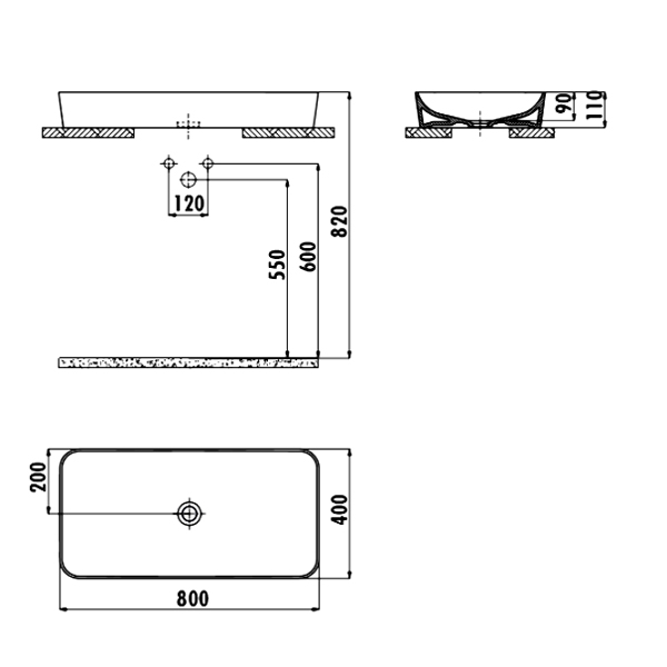 Раковина на столешницу CREAVIT Ultra 800х400х110 мм UL080-00CB00E-0000: