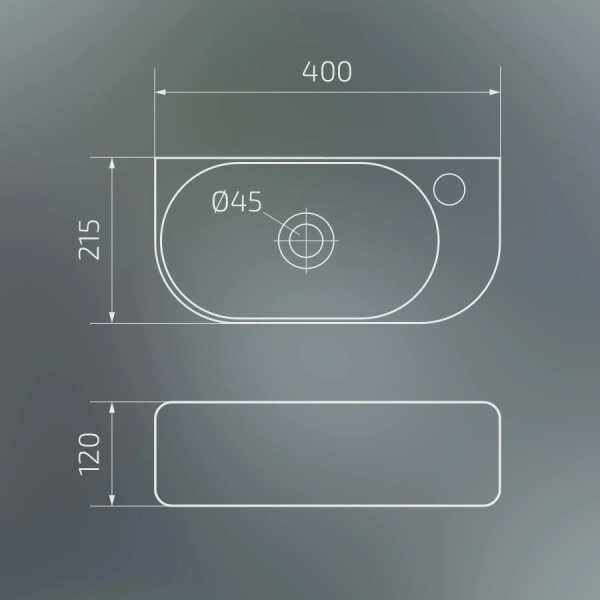 Раковина подвесная/накладная угловая GID 400x220x120 мм смеситель справа N9274L