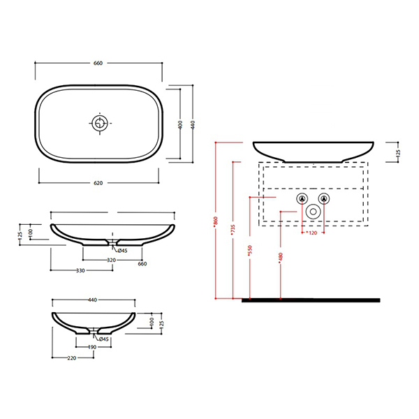 Раковина на столешницу OLYMPIA Clear 660x440x125 мм CLE4266001: