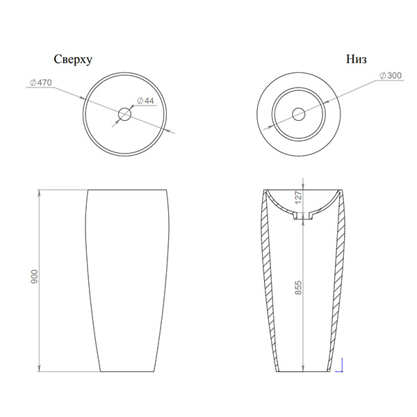 Раковина из искусственного камня напольная NS BATH 490x490x900 мм NSF-50000Раковина напольная LAUFEN Alessi 520х530х850 мм 8.1197.1.400.104.1