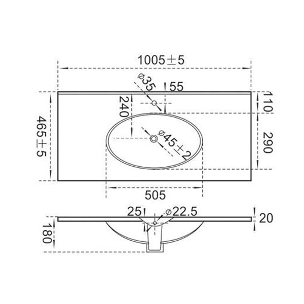 Раковина столешница CERAMALUX 1005x465x170 мм 9100F: