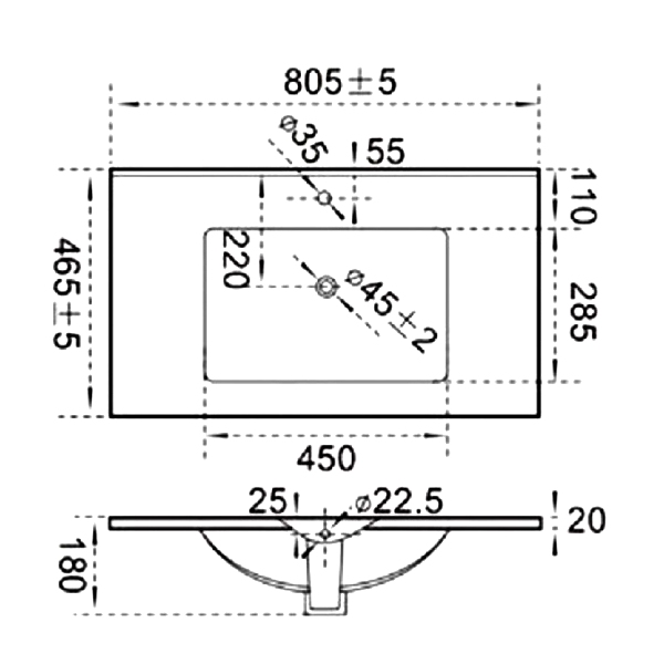 Раковина столешница для мебели CERAMALUX 810x460x170 мм 9080Е