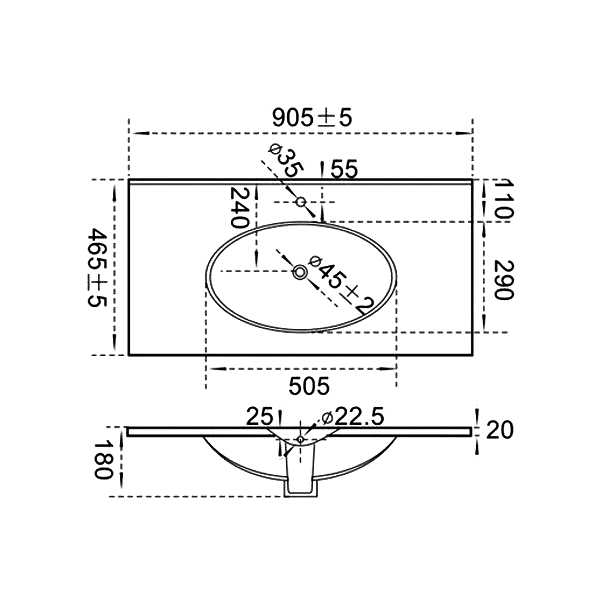 Раковина столешница CERAMALUX 905x465x170 мм 9090F:
