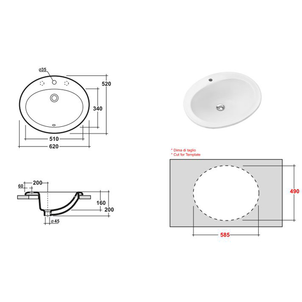 Раковина встраиваемая OLYMPIA Standard 620x520x200 мм LIL4662101: