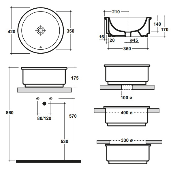 Вид установки - встраиваемая сверху или снизу столешницы, на столешницу