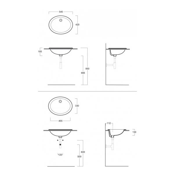 Раковина встраиваемая SIMAS Marine 545х420х185 мм