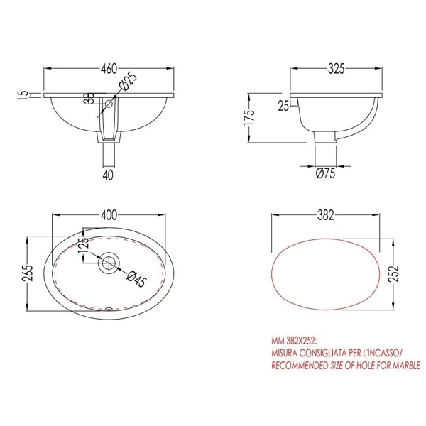 Раковина встраиваемая снизу DEVON DEVON White 46 460х325х175 мм: