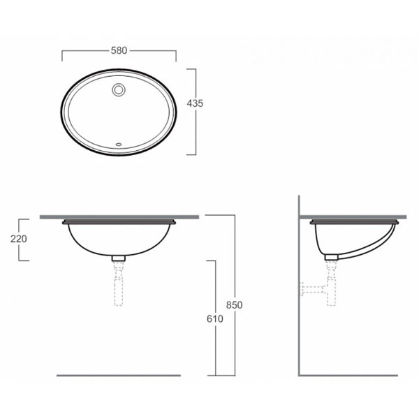 Раковина встраиваемая снизу SIMAS Nevada 580х435х220 мм: