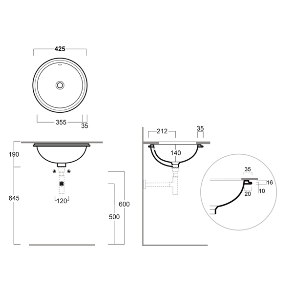 Раковина встраиваемая снизу SIMAS Top e lavabi d'Arredo 425х425х190 мм