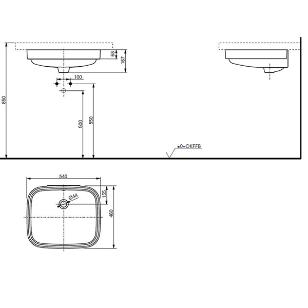 Раковина встраиваемая снизу TOTO Public 540x400x167 мм без отверстия под смеситель, с переливом