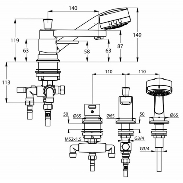 Смеситель для ванны встраиваемый на 3 отверстия KLUDI Zenta 38.446.05.75