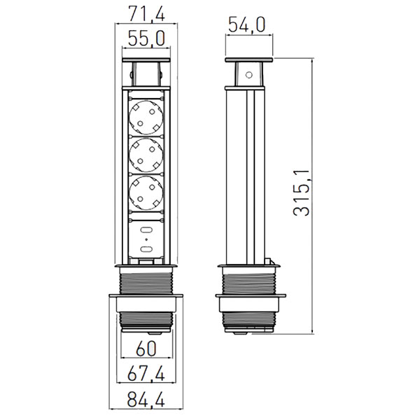 Удлинитель выдвижной 3 розетки AE-BPW3S60U-80 (Schucko) 2xUSB,серый, с проводом 1,5 метра - ваш надежный помощник на работе и дома, при использовании нескольких электроприборов. Удлинитель устанавливается в столешницу и полностью утапливается в нее, когда не используется. Как только вам нужно подключить какое-либо устройство, вы легким движением извлекаете наружу розеточный блок и подключаете к сети ваш гаджет.