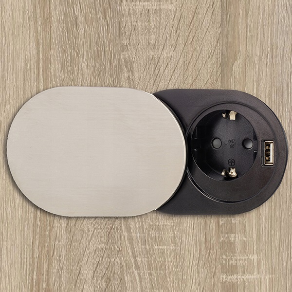 Удлинитель круглый врезной 1 розетка CHARGER Mini AE-BPW1S1UCH-53 1xUSB 2.4A, с проводом 1.9 м. инокс – полезное дополнение вашего интерьера, еще один источник питания электроприборов, не занимающий дополнительного места, как стандартный удлинитель. В нерабочем режиме удлинитель полностью скрыт в столешнице, а когда вам нужно включить в сеть электроприбор, вы легко открываете крышку и получаете доступ к розетке.