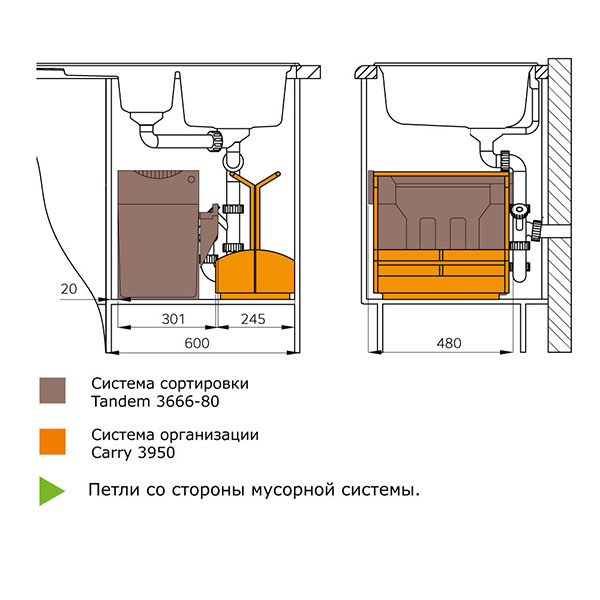 Элегантная выдвижная система с ручками-релингами из алюминия. Две переносные емкости легко снимаются с платформы. Отличное дополнение к мусорному ведру. Чистящие средства можно перенести непосредственно к месту, где они будут применяться. Полное выдвижение с мягким закрыванием Soft-Control обеспечивает удобный доступ. Подходит для дооснастки уже эксплуатируемых распашных шкафов.
