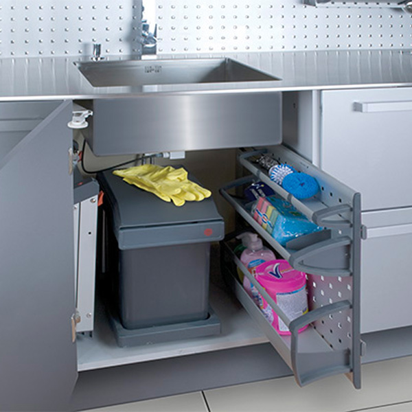 Выдвижная система (бутылочница) для узких ниш и шкафов с распашной дверью - отличное дополнение ко встроенному мусорному ведру или выдвижной системе сортировки. Направляющие полного выдвижения обеспечивают комфортный доступ и хороший обзор. Vario помогает содержать в порядке средства по уходу, щетки, подручные инструменты, противни и подносы, корм для домашних животных, мелкую утварь. Лотки, полочки, релинги и крючки можно переставлять на панели. Простой быстрый монтаж. Подходит для дооснастки уже эксплуатируемых распашных шкафов.