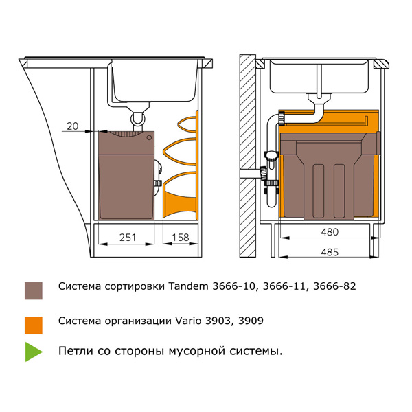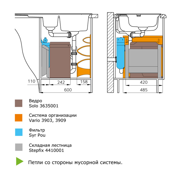 Система собрана для монтажа на левую стенку шкафа. Возможна самостоятельная перенастройка для установки на правую стенку. Это может занять некоторое время. Минимальная глубина шкафа 500 мм.