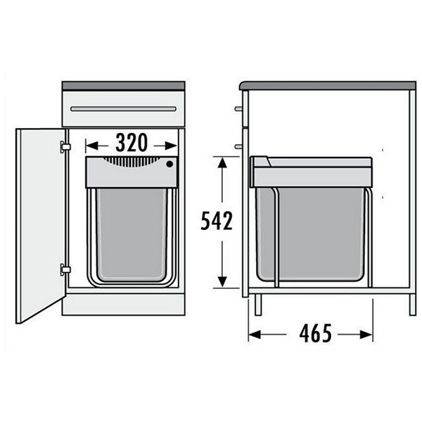 Система сортировки HAILO Easy Cargo в шкаф 400 мм, с контейнером 40 литров 320х465х542 мм, система монтируется ко дну шкафа 3668-40