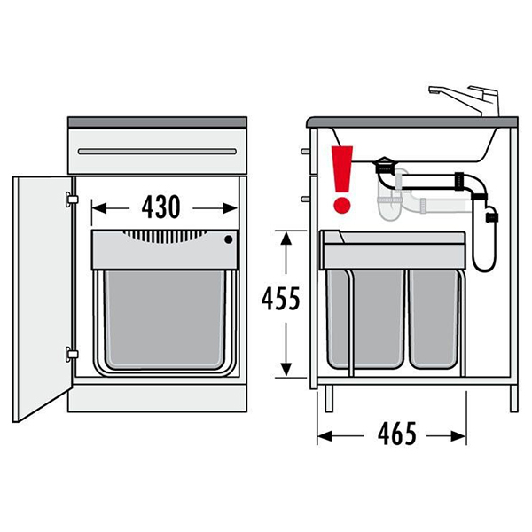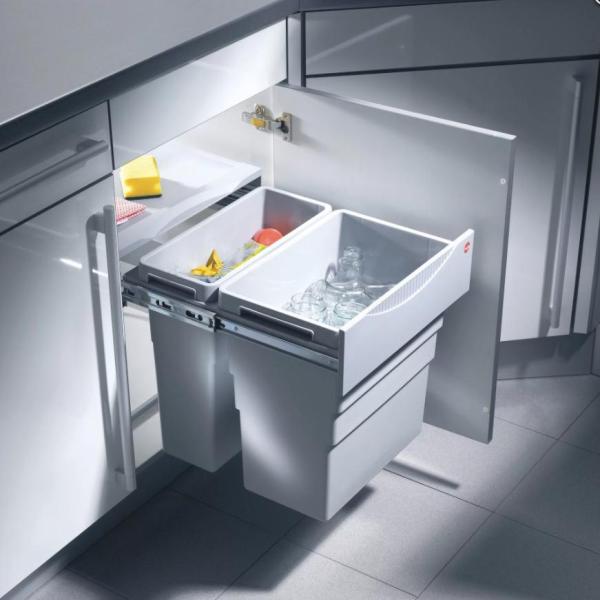 Система сортировки HAILO Easy Cargo в шкаф 500 мм, с двумя контейнерами 30 и 19 литров 430х465х455 мм, система монтируется ко дну шкафа 3668-50