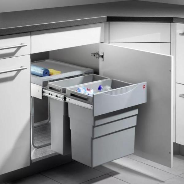 Система с 2-мя большими контейнерами 30 и 19 л удобна, когда мусор собирается для последующего вывоза.