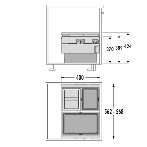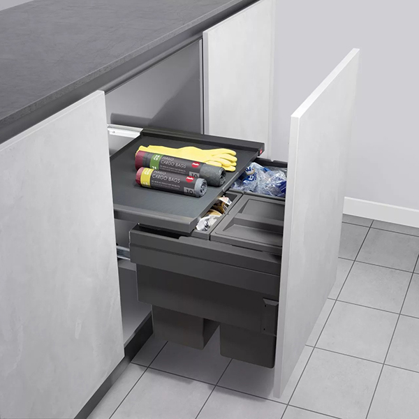 Система сортировки HAILO Cargo Synchro в шкаф 600 мм, с тремя контейнерами 28, 13, 13, литров 568x400х424 мм система крепится на боковые стенки шкафа 3608-63