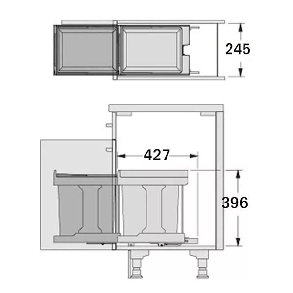 Комплектация: корпус, внутреннее ведро 20л, выдвижной механизм с крышкой, шаблон для монтажа, фурнитура.