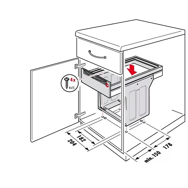 Очень быстрый и легкий монтаж ко дну шкафа.
