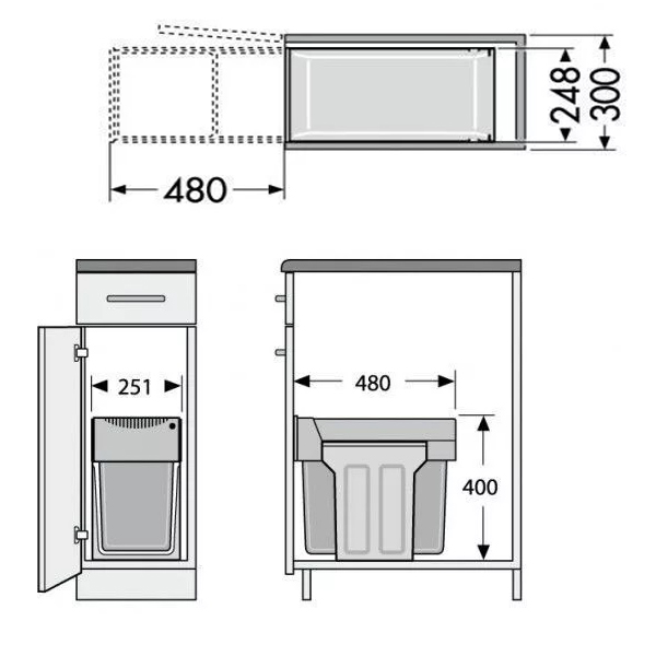 Система сортировки мусора HAILO Tandem 30 л. в шкаф 300 мм, с двумя ведрами по 15 литров, крепление ко дну шкафа. 3666-82