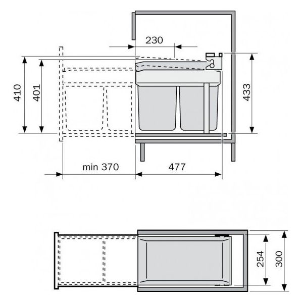 Устанавливается в готовый выдвижной шкаф базой 300мм. Если пространство в шкафу под мойкой занято водонагревателем, или измельчителем пищевых отходов, Вы можете поставить систему Hailo 3663-10 Tandem в соседний шкаф