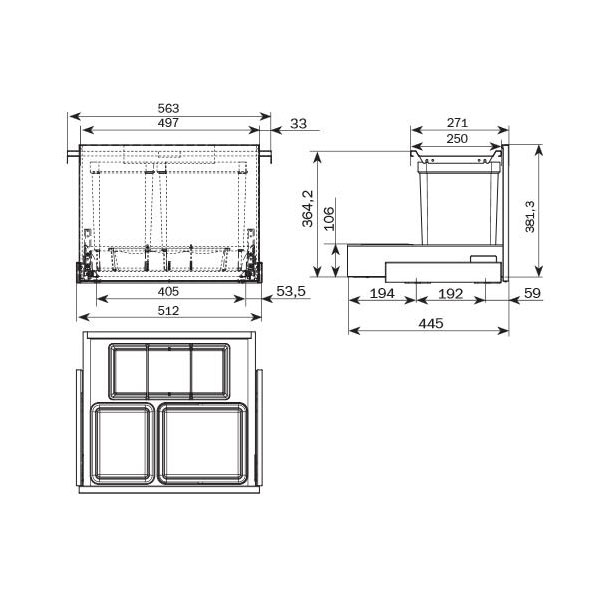 Система сортировки выдвижная TECNOINOX Base System 60 с направляющими мягкого скольжения Soft-Slide, ведра 18 и 12 л. 85023